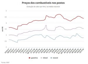 Enquanto isso, o preço médio do diesel para o consumidor terminou a semana em alta. O aumento foi de 0,11%, o que representa menos de R$ 0,01, para R$ 3,555. No ano, há alta acumulada de 3%.
