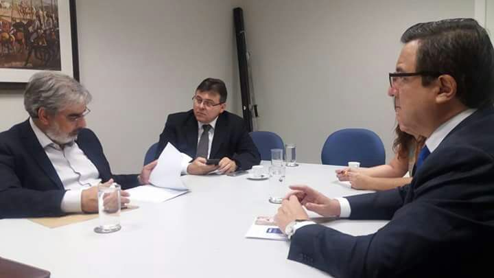 O deputado federal Danilo Forte e o presidente do Ceará Sporting Clube, Robinson de Castro, se reuniram com o diretor de marketing da Caixa Econômica Federal, Mario Neto, para negociar um acordo de patrocínio entre o clube de futebol e a instituição bancária para o ano de 2017.