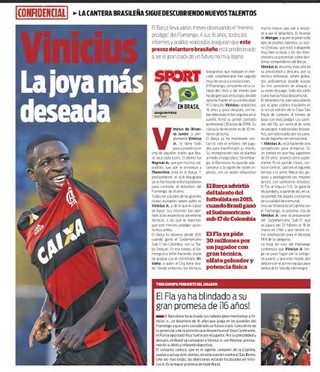 De acordo com a publicação, o Barcelona já conversa com o staff do jogador para manifestar o interesse na contratação de Vinicius. A medida é considerada precaução para evitar a perda do talento para a “legião de clubes ingleses com poder aquisitivo muito maior” que o Barça. O Arsenal e os dois Manchester seriam duríssimos competidores do Barcelona, informa o jornal.