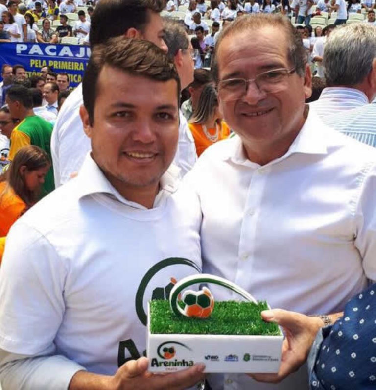 O Prefeito do Crato Zé Ailton Brasil esteve ontem junto ao secretário de Esportes Lamar Lima na solenidade de assinatura de ordem de serviço das Areninhas sob o comando do Governador Camilo Santana. O evento foi realizado no Estádio Castelão em Fortaleza.