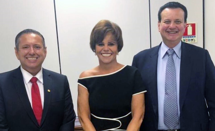 A deputada estadual eleita Patrícia Aguiar (PSD), ao lado do ex-vice governador Domingos Filho (PSD), visitou o Ministro das Ciências, Tecnologias e Comunicações Gilberto Kassab, em Brasília, para reivindicar a implantação do Internet Para Todos nos municípios cearenses.