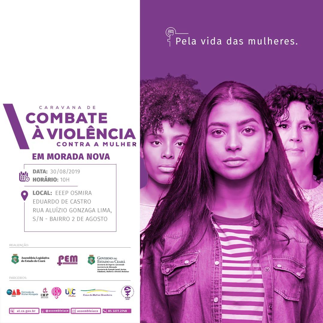 No próximo dia 30 de agosto, às 10 horas, na Escola Estadual de Educação Osmira Eduardo de Castro, em Morada Nova, será realizada a segunda visita da II Caravana de Combate à Violência Contra a Mulher, atividade da Assembleia Legislativa, realizada pela Procuradoria Especial da Mulher.