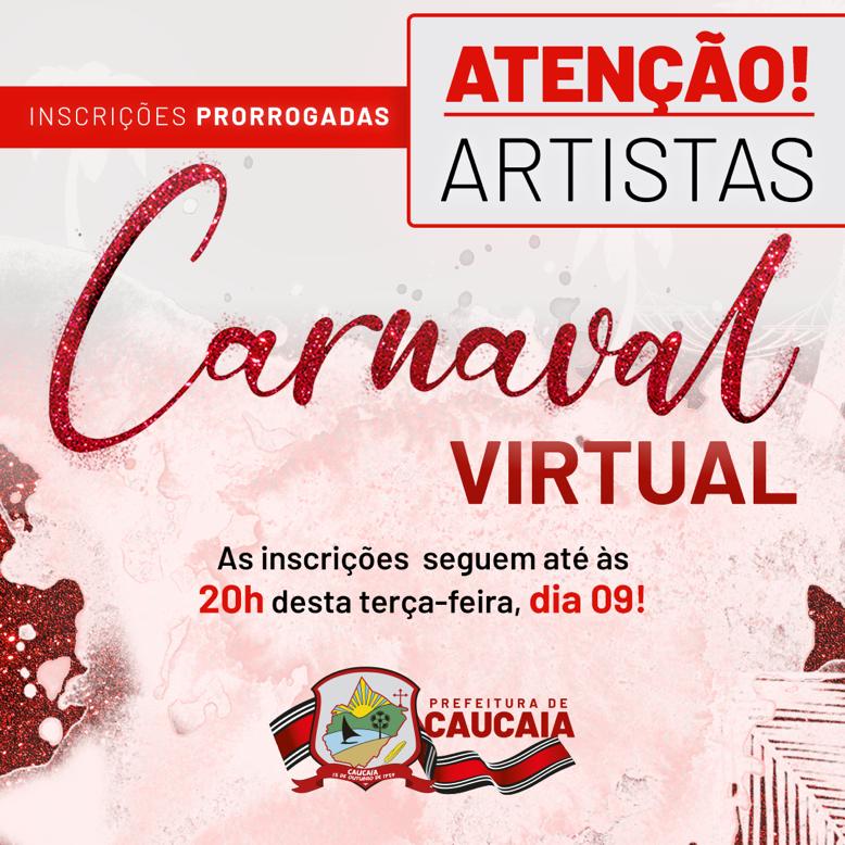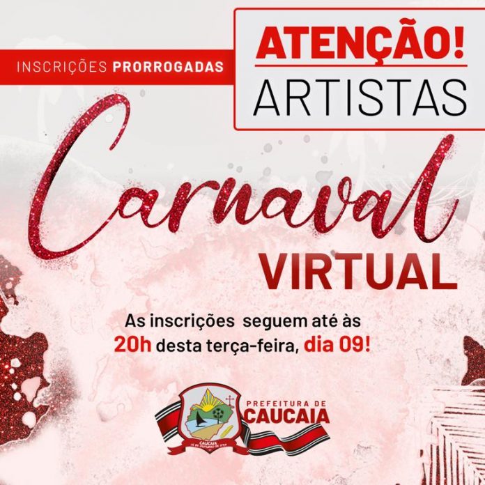 Cantores, bandas musicais, humoristas, grupos de dança, e artistas das mais variadas correntes culturais tem mais tempo para se inscreverem no 1º Carnaval Virtual. A Secretaria de Cultura decidiu prorrogar por mais um dia as inscrições, que se encerram nesta terça-feira (09). Além disso, está sendo feito um atendimento especial aos artistas no prédio da Secretaria, que fica na rua Juaci Sampaio Pontes, 1732, no centro de Caucaia.