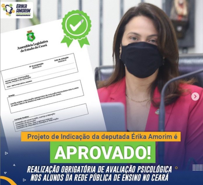 Aprovado, nesta quinta-feira (06), o Projeto de Indicação nº 282/2019, de minha autoria, que dispõe sobre a realização obrigatória de avaliação psicológica nos alunos da rede pública de ensino no Ceará.