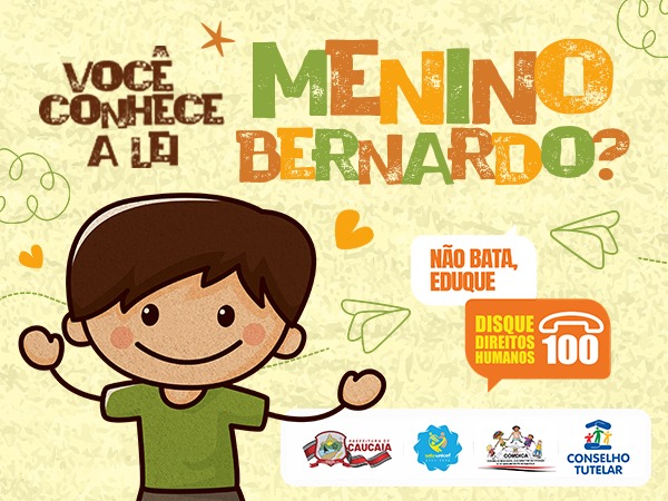 Você já ouviu falar da Lei Menino Bernardo? Esse é o novo tema de trabalho da Prefeitura de Caucaia, através da Comissão Intersetorial do Selo UNICEF em Caucaia. O objetivo é assegurar o processo humanizado na educação de crianças e adolescentes e reafirmar que as palavras “educação” e “violência” não combinam.