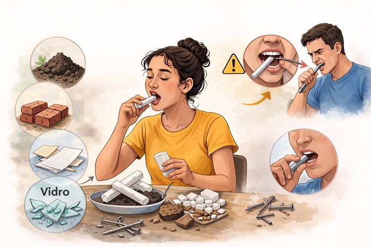 Trata-se de um distúrbio alimentar definido por comer uma ou mais coisas não nutritivas e não alimentares por pelo menos 30 dias, segundo informa o Dr. Drauzio Varella. “Tive desejo de comer arroz cru e terra vermelha, mas acabei engolindo um pedaço de tijolo durante a gravidez”, declarou uma. “Cheguei a consumir 2 kg de farinha de mandioca por dia”, relatou outro.